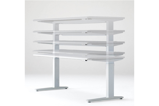 初速はゆっくり、その後スピードアップ。デスクの高さはボタンひとつで自在に設定が可能。