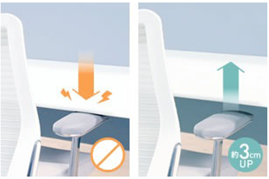 上下昇降の動作中に障害物にぶつかった際、異常電圧を感知し動作をストップいたします。すぐに約3cm戻る安全装置を標準搭載しています。