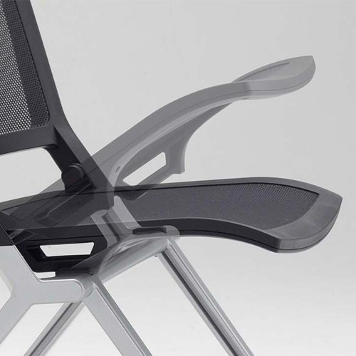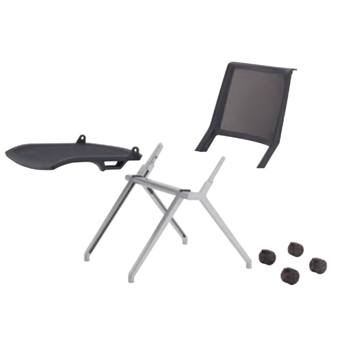 樹脂パーツ(キャスター除く)は再生材を使用。メッシュシートはペットボトルの再生材を使用。廃棄時には樹脂と金属に分別して100%リサイクルできるエコロジカルな設計です。