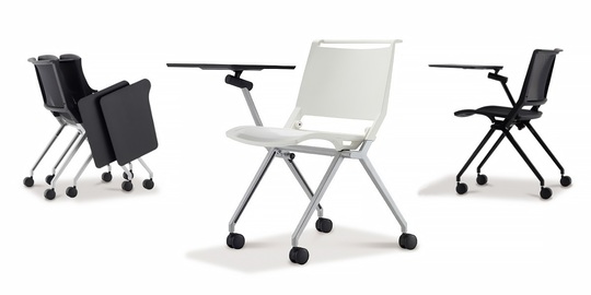 A3サイズに対応した大型タブレットです。使用しない時は回転収納でき、スタッキングも可能です。(床積み5脚)