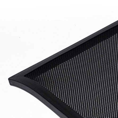 ファブリック感のあるオリジナルメッシュシートは、樹脂枠と一体成型されているため、長期間の荷重による弛みや変形等がありません。また、防炎加工が施されているため、万が一着火しても容易に燃え上がることはありません。