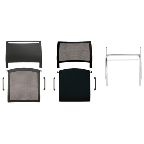 ファブリック感のあるオリジナルメッシュは樹脂枠と一体成型されているため、長時間の荷重による弛みや変形等がありません。また防炎加工が施されているため、万が一着火しても容易に燃え上がることはありません。