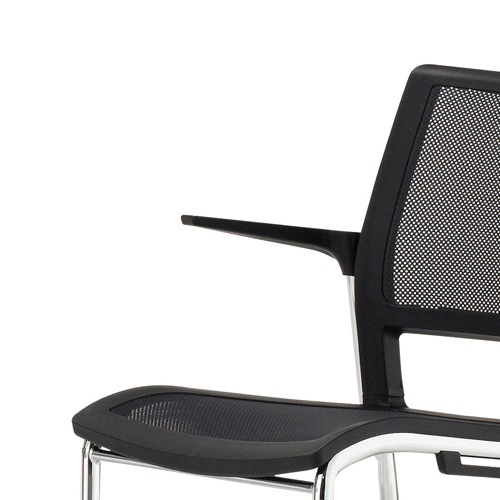 背座と同色のスタイリッシュな肘かけです。スタッキングも可能です。